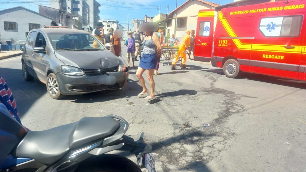 Bombeiros atuam em colisão de carro e motocicleta e vítima é conduzida ao HMG