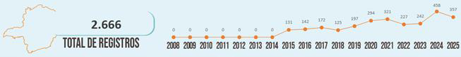 No período de 01 de janeiro de 2025 a 19 de setembro de 2025, foram registradas 357 ocorrências.