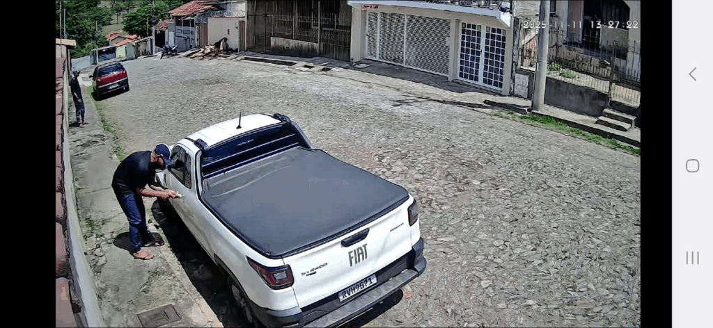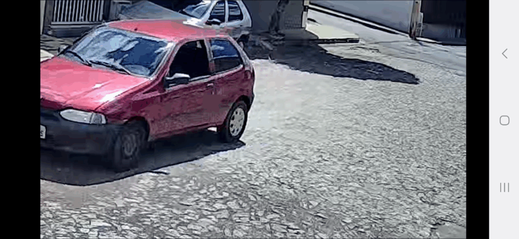 As imagens mostram dois suspeitos chegando na rua Diamante, no bairro Padre Eustáquio, em um Fiat Pálio de cor vermelha, e tentam furtar um veículo Fiat Strada estacionada. O comparsa espera na calçada enquanto o outro homem tenta abrir o veículo escolhido.