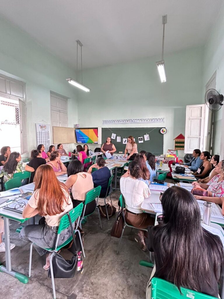 O primeiro encontro aconteceu na Escola Municipal Augusto Gonçalves com a participação de professores da educação infantil da rede municipal de ensino e profissionais das creches. Ao todo, foram formadas três turmas, com média de 35 participantes em cada.