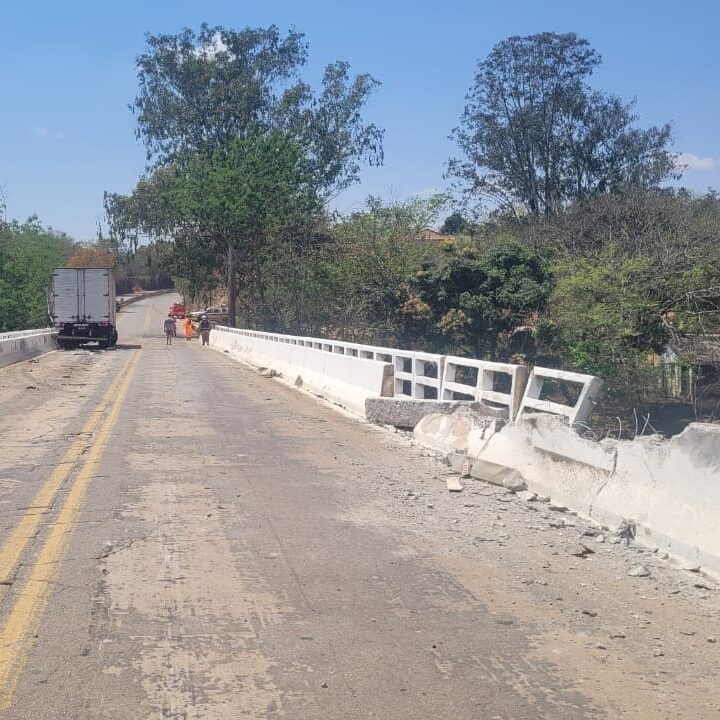 Vídeo: caminhões batem e um deles cai de ponte do Rio Pará, na BR 352, em Pitangui