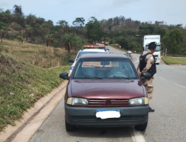 O veículo usado na tentativa de roubo por três homens na sexta-feira, 31 de outubro, foi localizado pela Polícia Militar, às margens da rodovia MG 050, próximo à Modal.